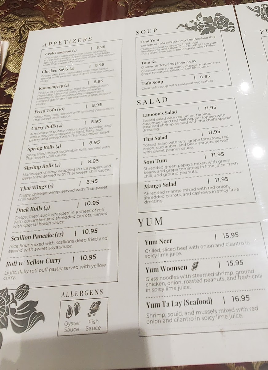 For a delicious and cozy dining experience, Lamoon’s Thai Restaurant is a destination you won’t want to miss. Come for the food, stay for the hospitality.